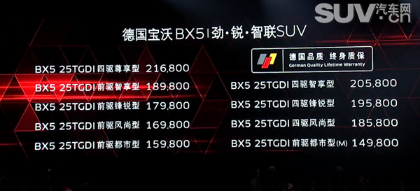 | BX5 25TGDI 前驱锋锐型 | 17.98 |