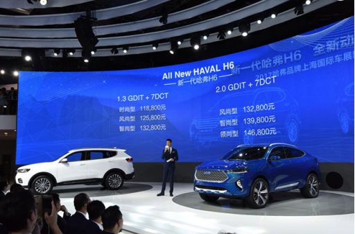 在大家翘首以盼的目光中,哈弗展台重头戏倾情上演。伴随着舞台上人屏互动舞蹈的精彩演出,全新哈弗H6从舞台两侧惊艳登场,售价11.88万元-14.68万元。该车分为红蓝标两种车型,并搭载2.0 GDIT与1.3GDIT缸内直喷两种动力组合,共计12款车型。