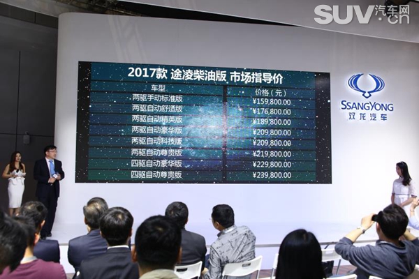 2017年4月19日上海国家会展中心,“世界级SUV专家”双龙汽车亮相上海车展8.2馆,双龙XLV途凌柴油版也在本届上海车展首发,售价15.98万-23.98万元。同时亮相的还有双龙汽车旗下途凌汽油版、蒂维拉、柯兰多等新品。