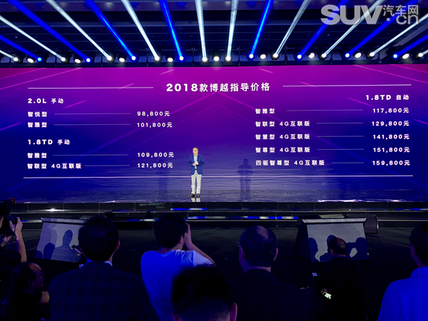 2018年3月15日,2018款吉利博越正式上市。新车在外观及配置方面相比现款车型进行了一定的升级调整,值得一提的是新款博越还是首款搭载吉客智能互联系统的车型。新车共推出9款车型,其售价区间为9.88-15.98万元,详细车型及售价请看下表: