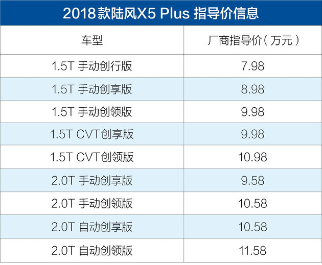 日前我们获悉,陆风新款X5已经正式上市。新车共推出9款车型,售价区间为7.98-11.58万元。新车在外观方面与现款保持一致,但配置方面有所调整。