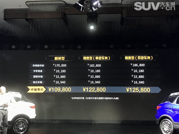3月28日,云度旗下A0+级纯电SUV云度π3在滨海城市厦门正式上市,新车共推出精英型和尊贵型2款车型(其中尊贵型分为单色车身和双色车身),动力方面配备了一台最大功率122马力(90千瓦)、峰值扭矩270牛·米的驱动电机,与之搭配的是38.5kWh的三元锂电池组。新车售价区间为17.08-18.68万元,详见下表: