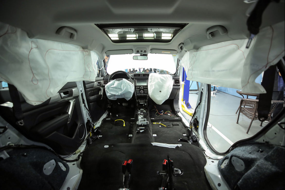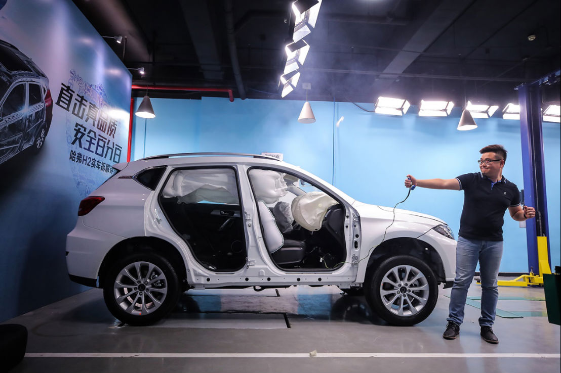 现场针对高速发生碰撞时,哈弗H2哪些配置和功能能对车内乘员形成有效保护进行了探讨。如预紧式安全带,颈部保护、溃缩式转向管柱和防下潜式座椅等,都能有效保护车内乘员的安全。值得一提的是,哈弗H2配备了延峰百利德的汽车安全产品,共配备6个安全气囊以及帘式气囊(贯穿前后排乘员位置)、预紧限力式前排安全带、后排三点限力式安全带,通过与气囊配合全方位保证乘员安全。拆车现场还对车内气囊进行了引爆试验,更为直观的展示了哈弗H2对车内乘员的保护。