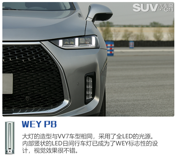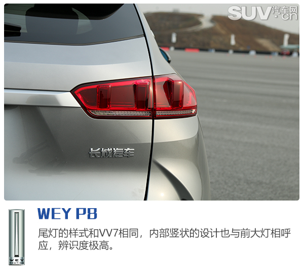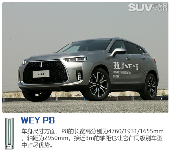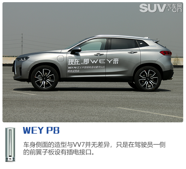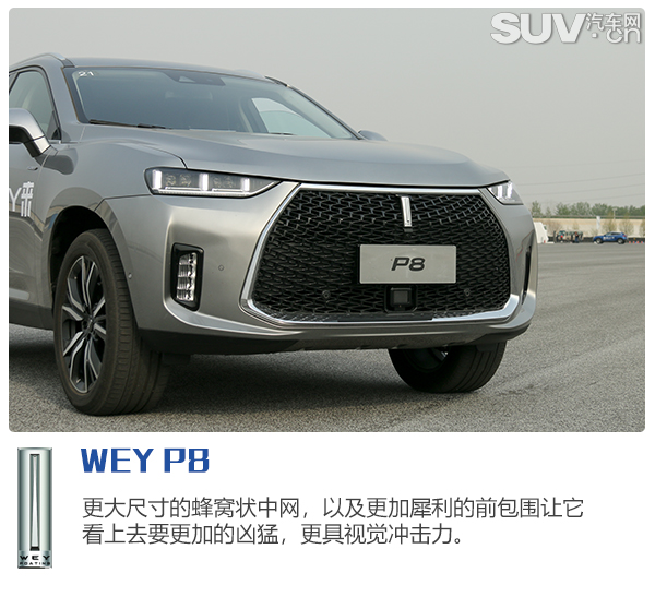 P8是WEY基于旗下新能源专用平台Pi4打造的首款车型,而Pi4由何而来,P代表Plug-in插电式,i为intelligent智能化,而4则代表4WD四驱系统。未来Pi4将会搭载多种动力系统,并会衍生出多种分类的车型。WEY P8外形是基于VV7打造而来,所以整体上与VV7基本保持一致,只是在细节上有一定差异。和国内很多传统的新能源车型不同,P8似乎并不想让人们认为它是一款新能源车型,全车上下没有太多新能源的设计元素。