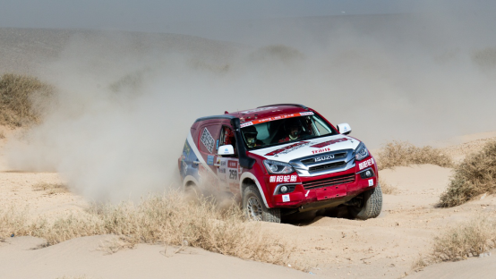 比赛首站,车队就面临着库木塔格沙漠漫天“沙海”的挑战,在连绵200余公里的长距离沙漠赛道中奔跑,对赛车动力性能挑战极大,mu-X牧游侠和D-MAX搭载的五十铃4JJ1 3.0T王牌柴油发动机,430N·m的峰值扭矩输出强悍直接,在沙漠中奔跑起来毫不费力,确保了车队全速行进;在面对哈密雅丹魔鬼城和大海道中黑戈壁时,乱石飞溅,沟壑不断,让不少车悬臂被震掉甚至爆胎、趴窝。mu-X牧游侠和D-MAX非承载式车身、扎实的刚性底盘以及偏向越野的悬挂系统,都经受住了高强度、长时间的极限考验; 比赛进入最后阶段翻越天山山脉大峡谷,随即是一段混合了沙漠、戈壁、雅丹地貌和牧区道路长达370公里的超长特殊赛段,长距离的跋涉十分考验赛车对耐久性和燃油经济性,江西五十铃的两款赛车都以低油耗、高性能著称,环塔路上始终自信。除了赛道复杂多变,变态热是对赛车的另一重残酷考验,70多度的地表温度让很多赛车出现不同程度自燃甚至烧毁, 五十铃双雄抵挡住了重重“烤验”,赛车状态良好,最终抵达胜利终点。