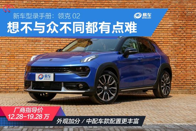 易车-新车型录手册 6月28日领克02正式上市,共推出8个车款,厂商指导价为:12.28-19.28万元,领克02定位为紧凑级轿跑SUV,如今紧凑型轿跑SUV越来越受到年轻消费者的关注,作为面向年轻消费者主打时尚的领克这一领域自然不会放过。