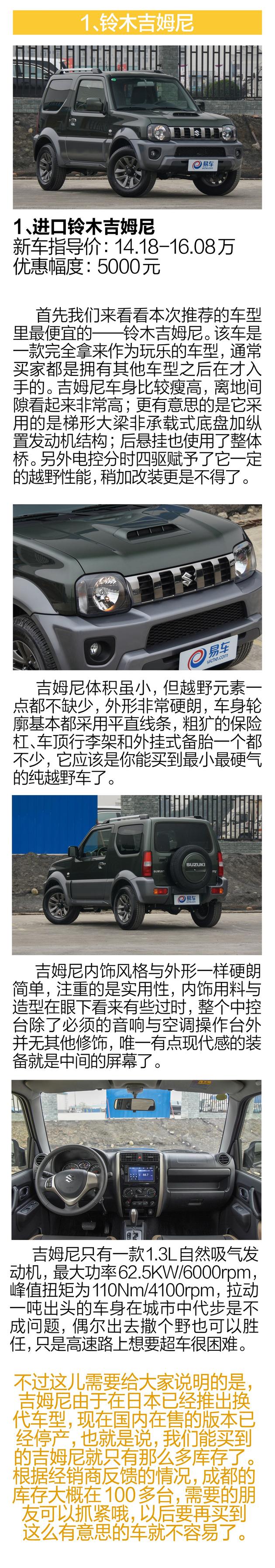 今天我们给各位推四款硬派SUV,这些车型都符合硬派SUV的特性,拥有非承载式车身、动力不错的发动机和强大四驱系统。推荐的车型依价格由低到高。