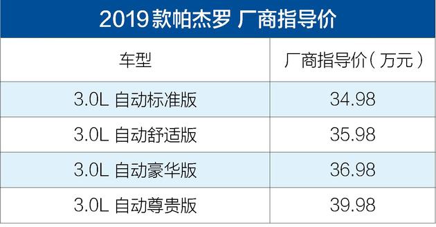 7月1日,2019款进口三菱帕杰罗新车正式上市。2019款帕杰罗针对外形细节、功能配置进行了小幅升级,依旧搭载3.0L V6自然吸气发动机,共推出4款车型,售价区间为34.98-39.98万元,并享2年0利息的购车金融补贴。
